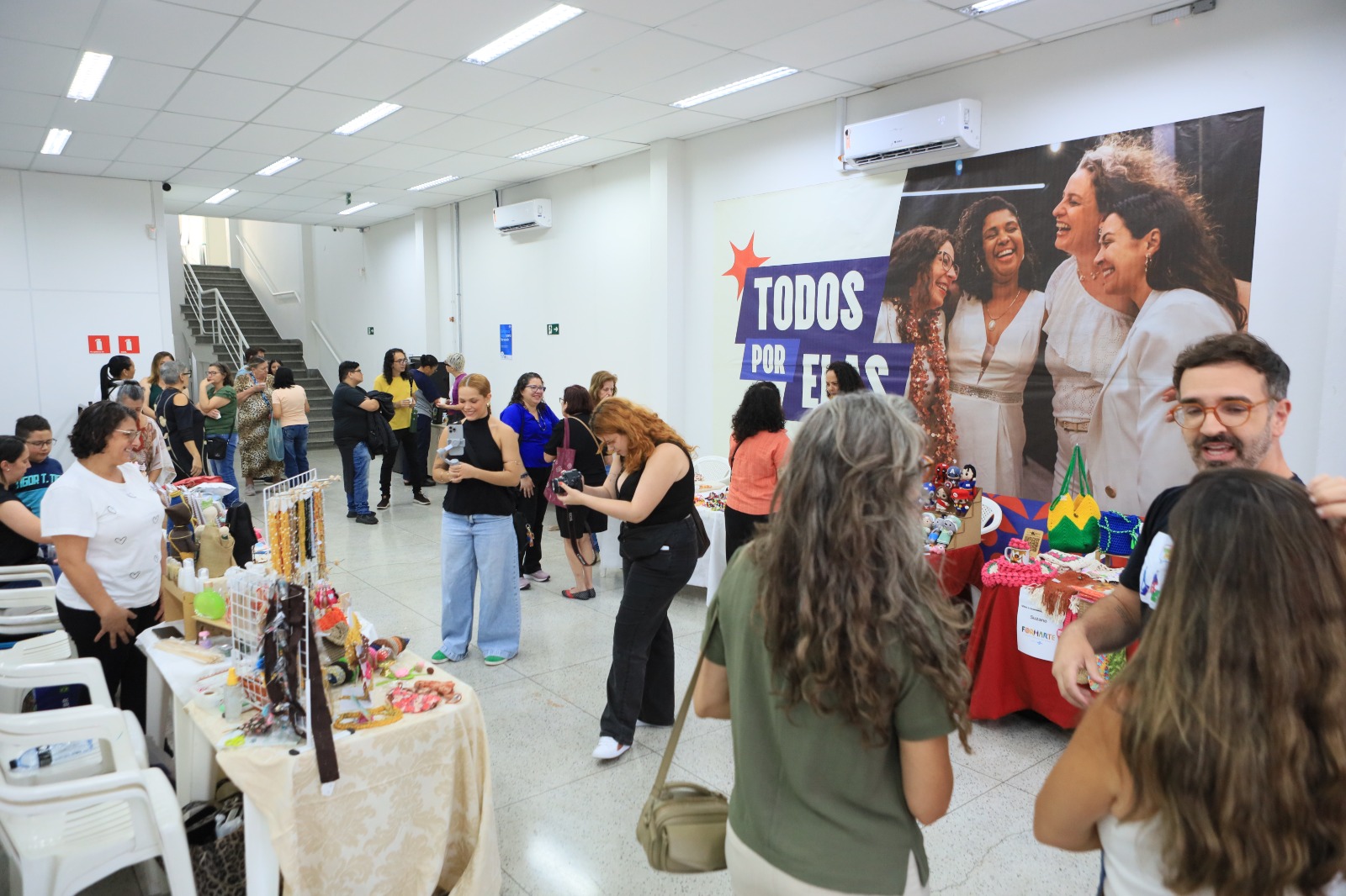 Durante a conferência, foi realizada uma feira com produtos de artesãos locais, incluindo peças em crochê, papelaria e bijuterias com o objetivo de fomentar a economia e os negócios regionais. Esse evento é muito importante porque nos sentimos valorizadas. Faço crochê desde os 10 anos e, há quatro, passei a trabalhar com amigurumis, contou a empreendedora Joana Paula Teixeira, do Ateliê Crochê e Amigurumi da Jô.